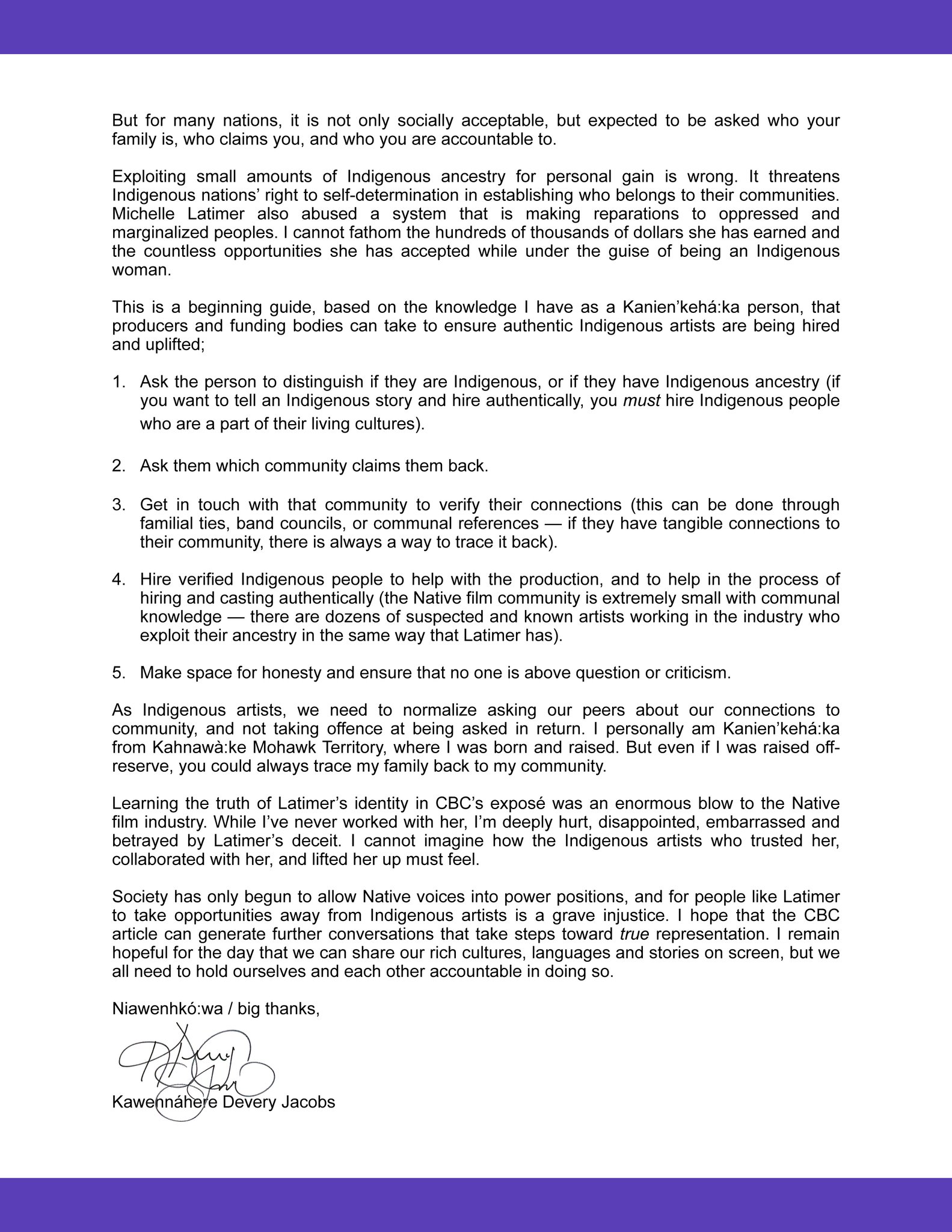 Following the revelation that the trickster director and producer is not of aboriginal descent.